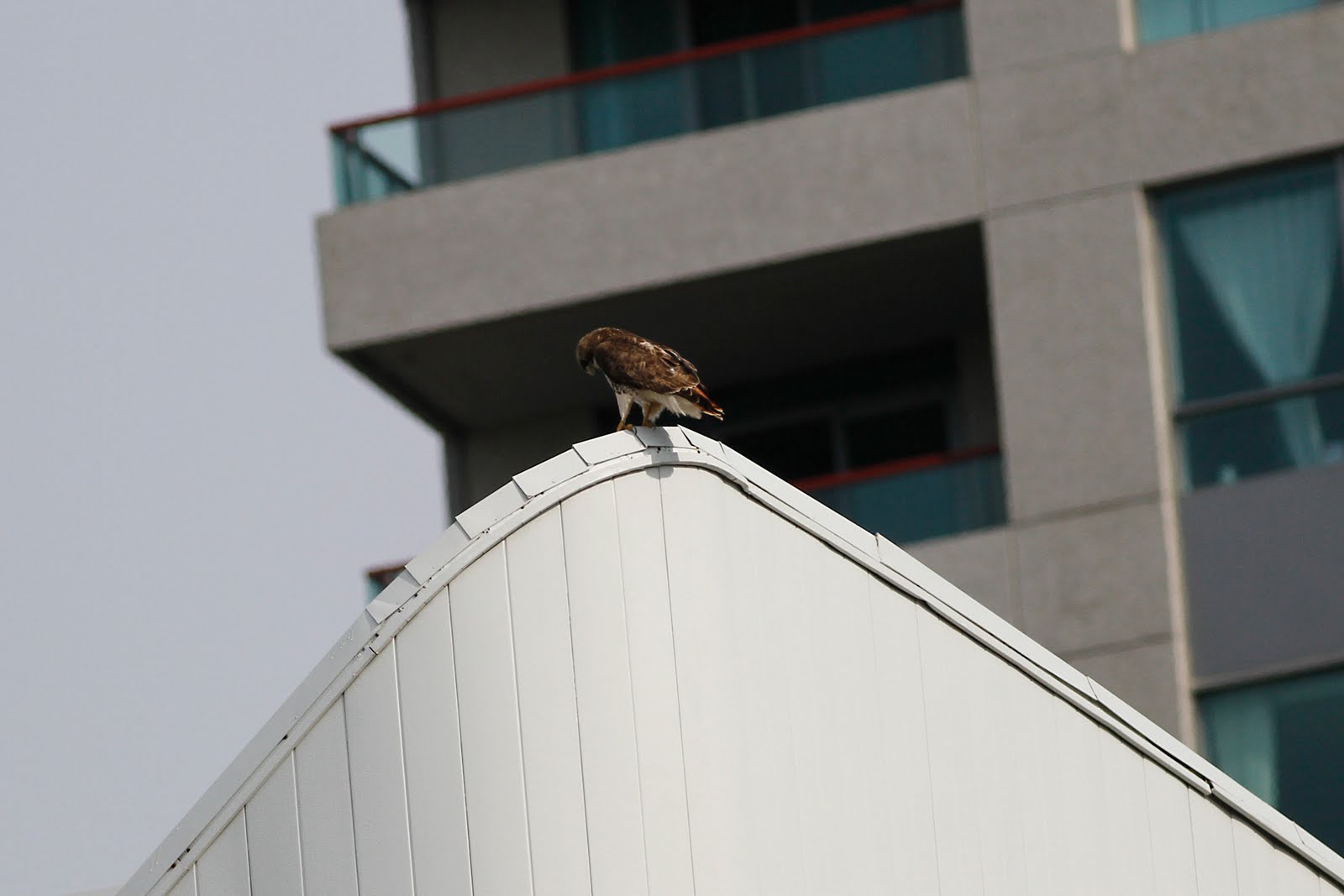 The Red-tailed Hawk family has succeed in having two eyas. Very hard to see them but I can hear them and see them flapping around high in the nest.